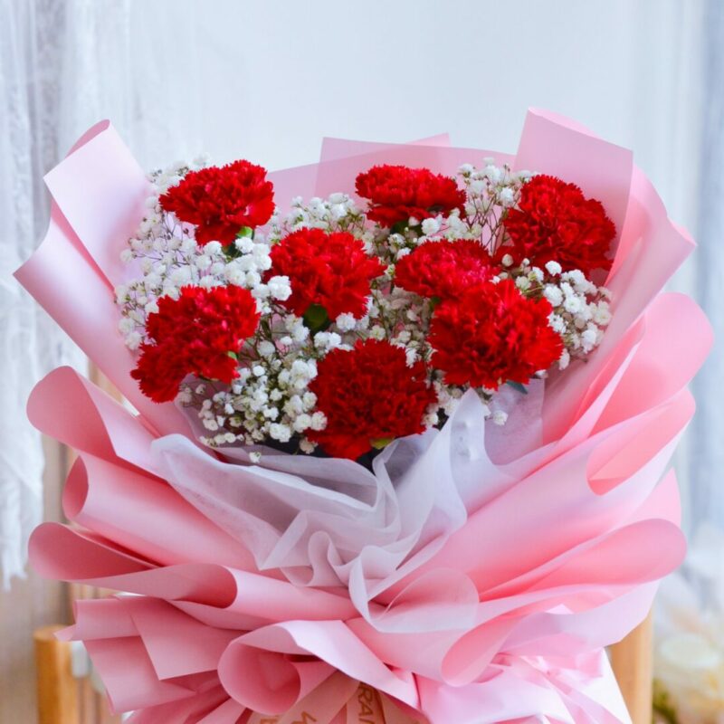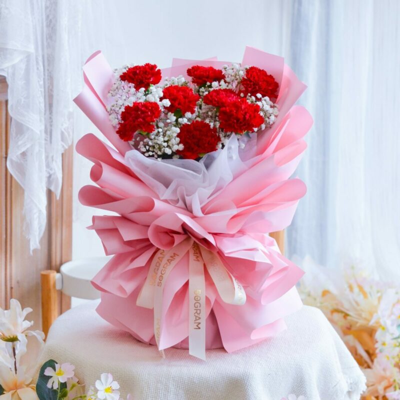 Passionate Love Red Carnation Hand Bouquet
