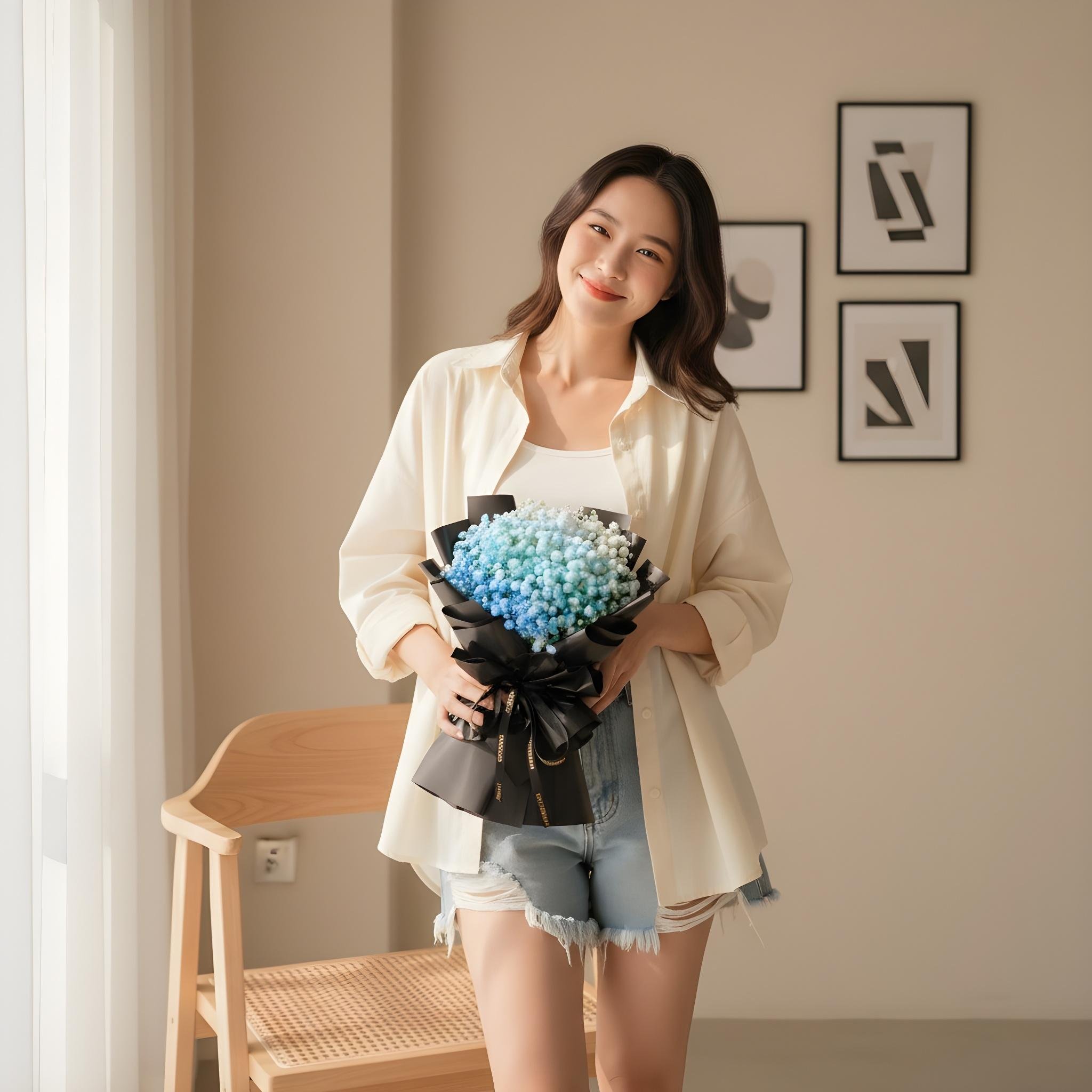 Featuring baby’s breath delicately tinted from light to deep blue, this bouquet represents the layers of wisdom, patience, and enduring love that fathers give so freely. The gentle gradient captures both serenity and depth, symbolizing calm leadership and valor in every stage of life.