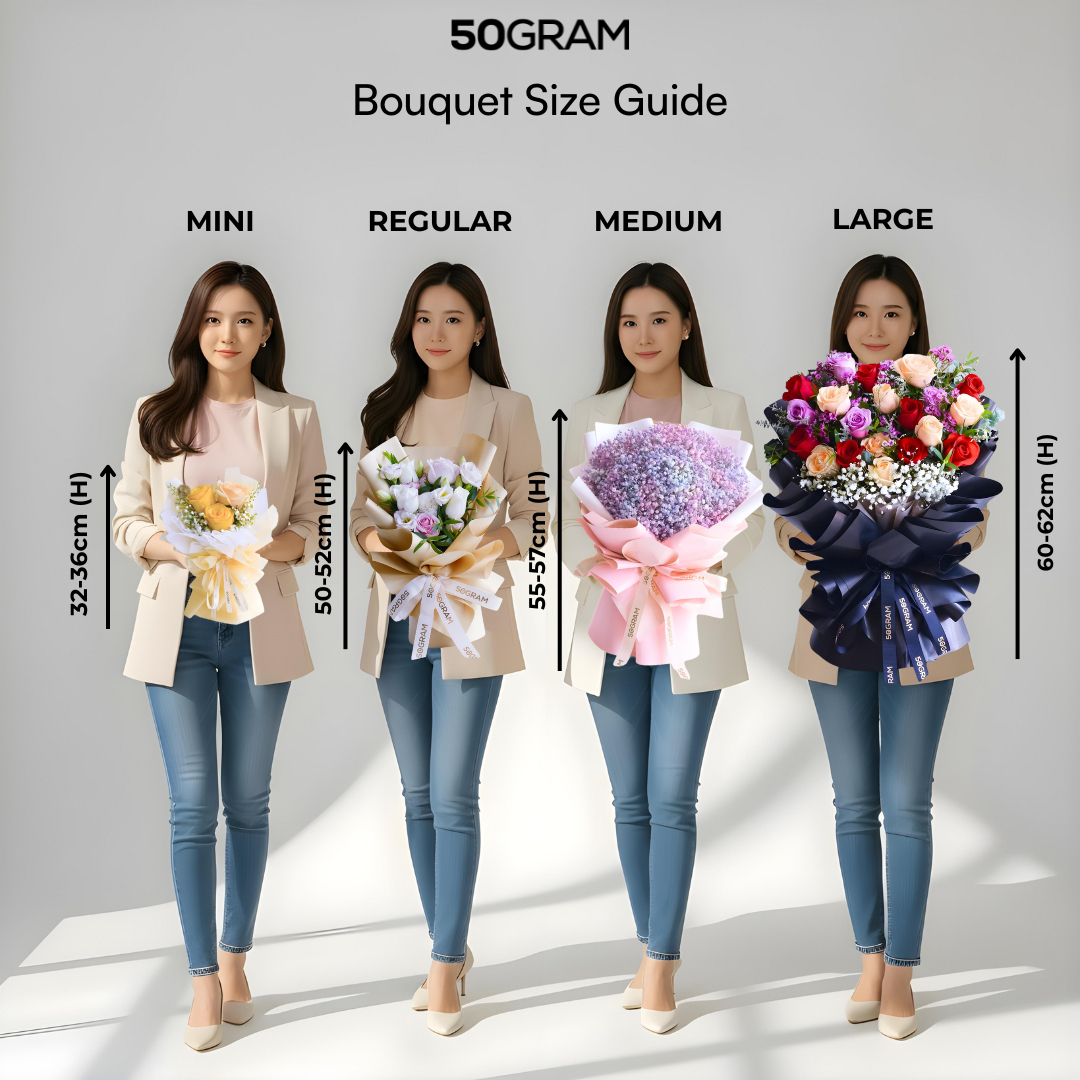 50Gram online Florist and gift is the expert in Fresh Flower Delivery in Klang Valley covering ( Kuala Lumpur Petaling Jaya, Subang Jaya, Cheras, Bukit Jalil, Old Klang Road, Kepong, Damansara area, Puchong, Ampang, Seri Kembangan even Cyberjaya & Putrajaya . for Nationwide delivery, you can pick our preserve flower and gift, such as plush toy Jelly cat and gift box. Our florist has been fulfilling our customer orders with the best attitude and has earned a high Google review rating of 4.7 stars. Our flower delivery service has been delivered more than 250,000 fulfilment and a ton of return customers with us. We want to give you the best experience from the ordering process to the experience of the flowers received. Besides Flowers, you can find cakes, gifts, Famous jelly cat plush toys, sweet treats and we ever have Disney collaboration products. 50Gram started from Gratitude to send flowers to our late mother, with our purpose ” Gratitude made simple “, we help customers build relationships with joy and gratefulness.