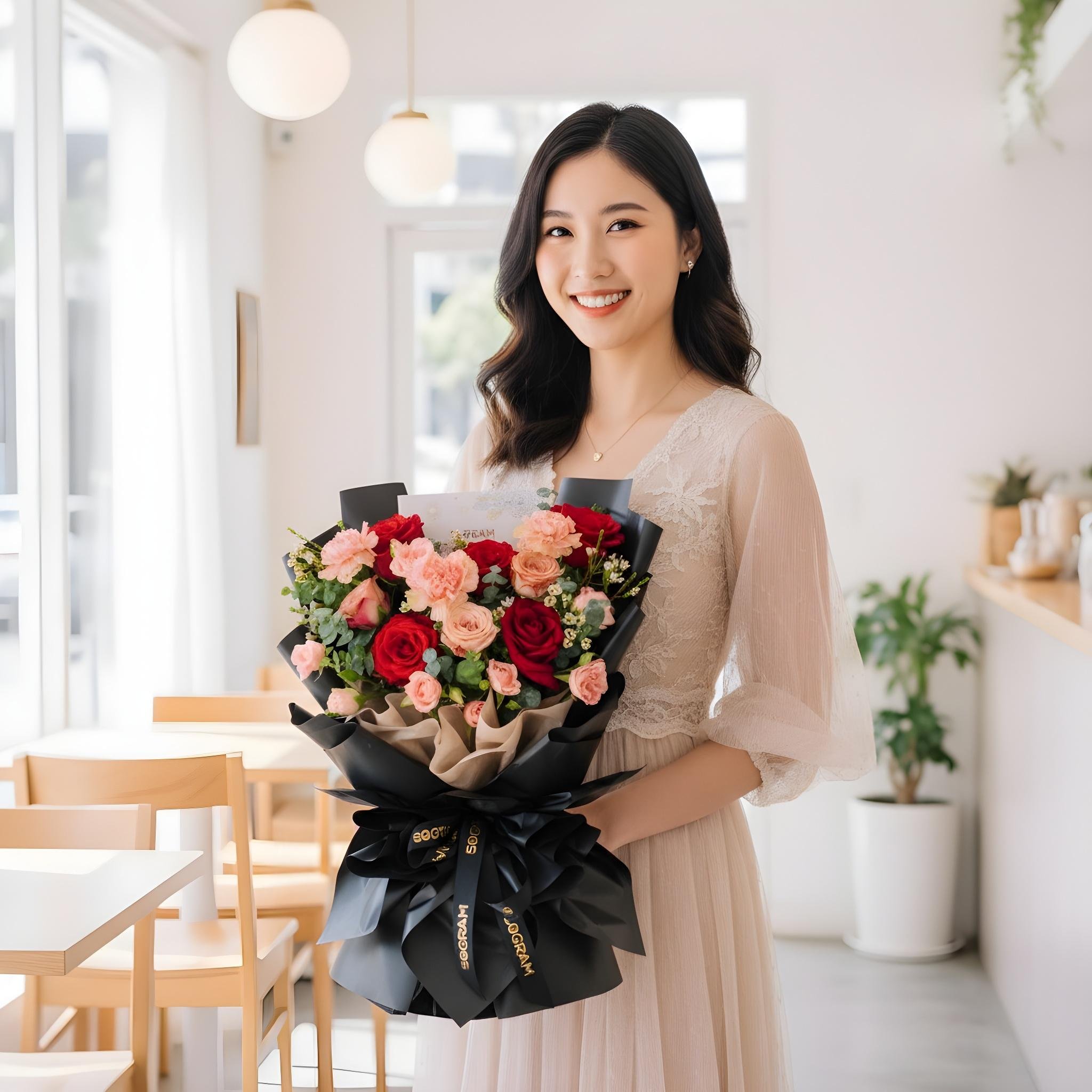 • Handcrafted with Care: Our skilled florists handcraft each bouquet with meticulous attention to detail. The arrangement is thoughtfully designed to create a harmonious blend of colors and textures, resulting in a captivating visual masterpiece that will leave a lasting impression.