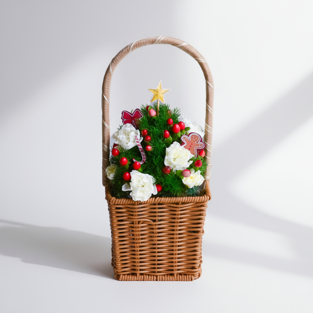 Radiating timeless charm, the Festive Elegance Flower Basket brings together simplicity and sophistication in perfect holiday style.