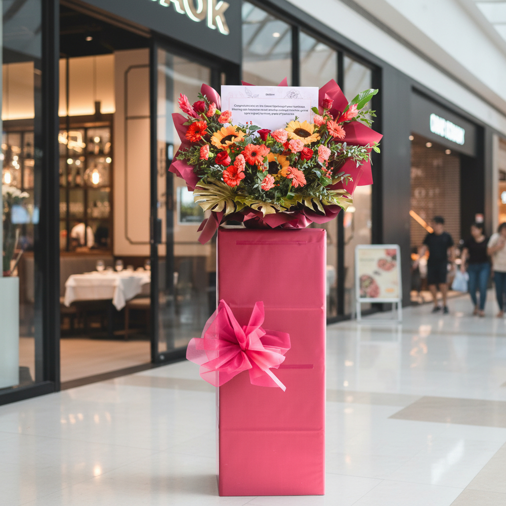 Ignite the path to success with Flame of Fortune business opening stand, a vibrant and auspicious floral stand bursting with powerful red and golden hues — perfect for celebrating grand openings and milestones.
