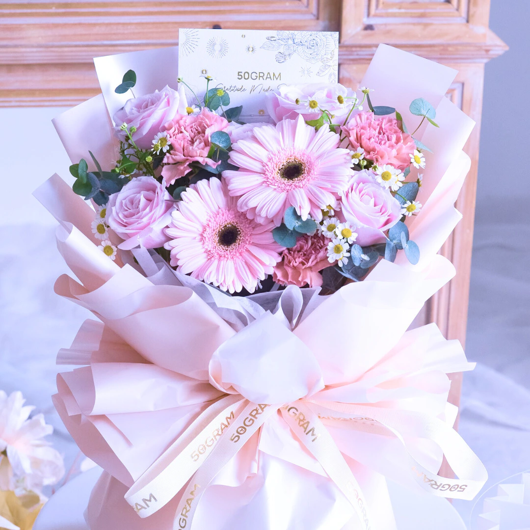 50Gram online Florist and gift is the expert in Fresh Flower Delivery in Klang Valley covering ( Kuala Lumpur Petaling Jaya, Subang Jaya, Cheras, Bukit Jalil, Old Klang Road, Kepong, Damansara area, Puchong, Ampang, Seri Kembangan even Cyberjaya & Putrajaya . for Nationwide delivery, you can pick our preserve flower and gift, such as plush toy Jelly cat and gift box. Our florist has been fulfilling our customer orders with the best attitude and has earned a high Google review rating of 4.7 stars. Our flower delivery service has been delivered more than 250,000 fulfilment and a ton of return customers with us. We want to give you the best experience from the ordering process to the experience of the flowers received. Besides Flowers, you can find cakes, gifts, Famous jelly cat plush toys, sweet treats and we ever have Disney collaboration products. 50Gram started from Gratitude to send flowers to our late mother, with our purpose ” Gratitude made simple “, we help customers build relationships with joy and gratefulness.