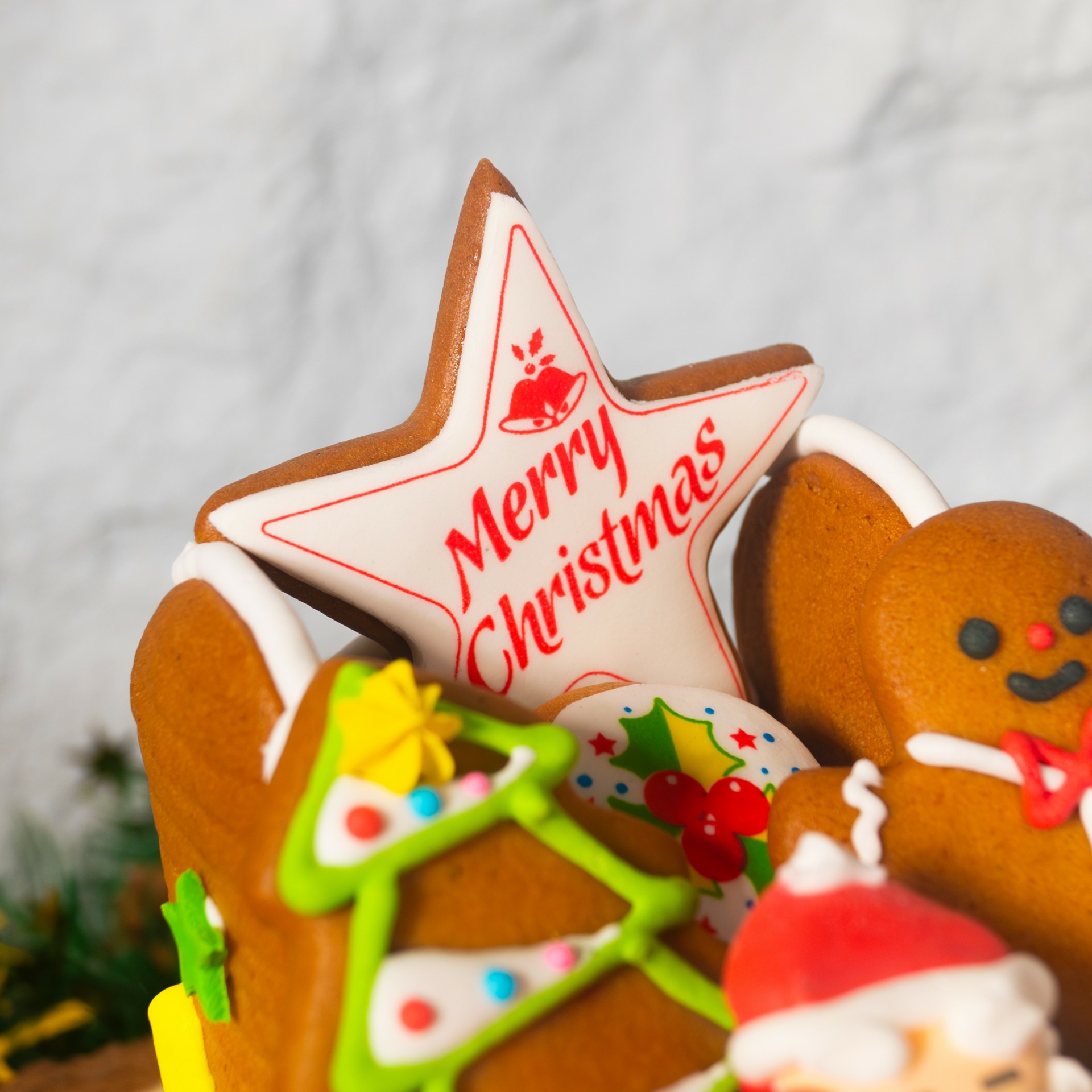 Ingredients : egg, flour, brown sugar, molasses, ginger, cinnamon, mix spice, icing, snow powder