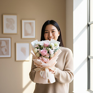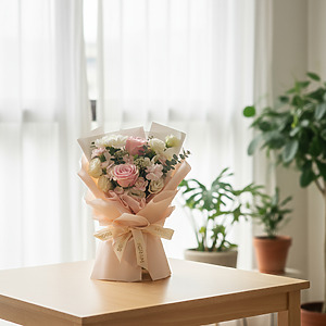 The delicate pink roses convey gratitude and appreciation, celebrating the compassion and kindness that women bring to the world. Paired with the white carnations, representing purity and the enduring strength of women, the bouquet is a beautiful expression of grace and elegance.