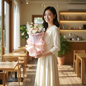 Graceful and romantic, the Ivory Tatiana Pink Roses Russian Style Bouquet is designed with a naturally abundant, garden-picked aesthetic. Soft pink roses pair beautifully with delicate light pink carnations, while white eustoma and white laced flowers add purity and refinement.