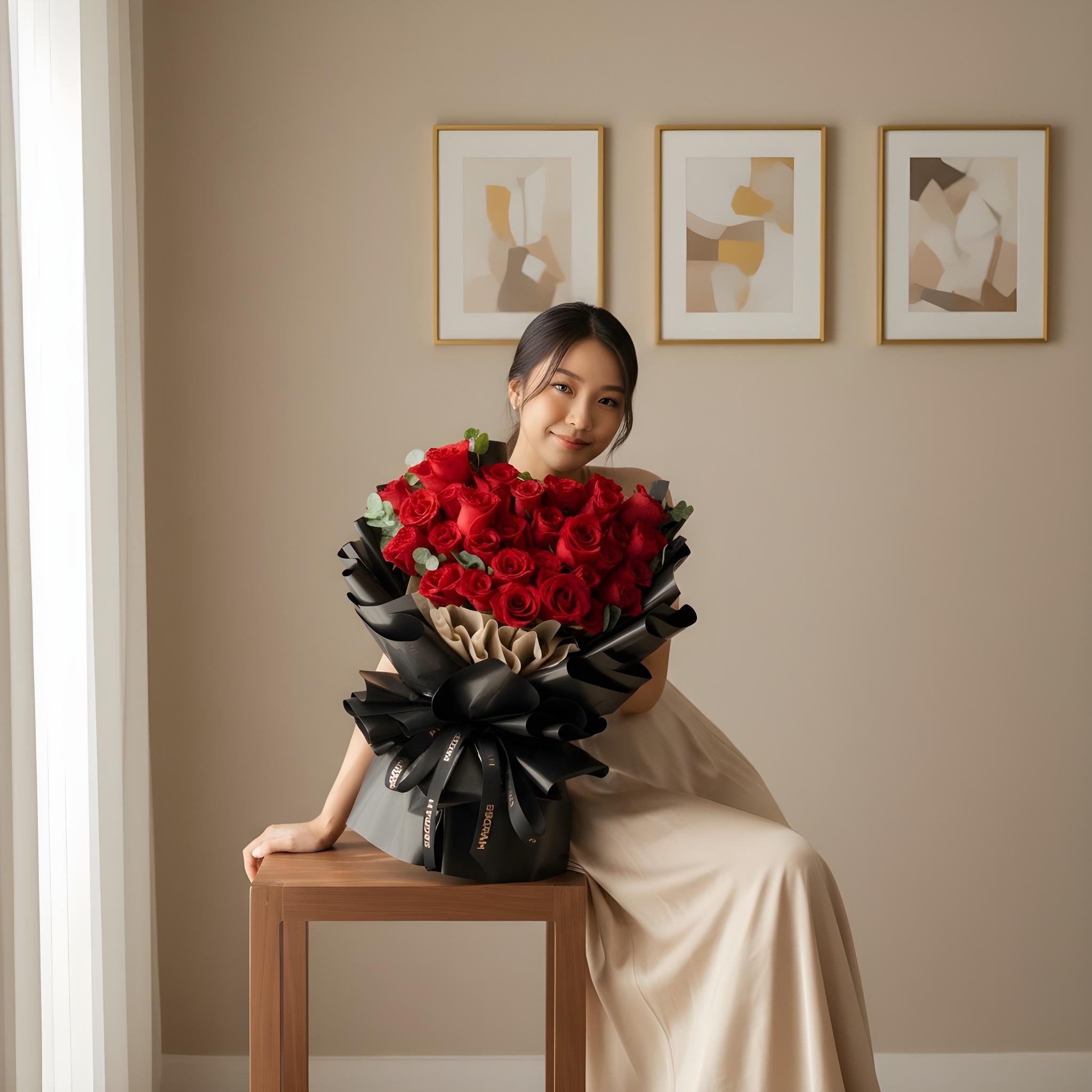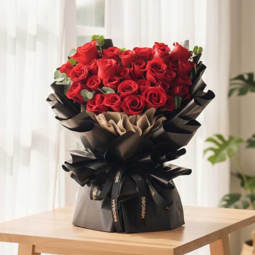 Purchase & earn 369 points!Indulge in the Luxuriante 33 Red Roses Bouquet, a gorgeous arrangement that celebrates red roses’ timeless beauty and passion. This handcrafted bouquet features 33 exquisite red roses meticulously arranged to create a stunning display of love and affection. With free delivery in Kuala Lumpur (KL) and Petaling Jaya (PJ), make a grand gesture or surprise someone special with this luxurious bouquet.