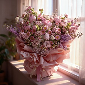 Purchase & earn 988 points!The “Noble Bloom Pink Roses Hand Bouquet” is a luxurious and enchanting arrangement that exudes elegance. Featuring soft pink roses, delicate pink peonies, charming pink asters, and lush white hydrangeas, this bouquet is a symphony of romantic hues. Perfect for expressing love, gratitude, or celebration, it radiates grace and timeless beauty. ππΈπ€