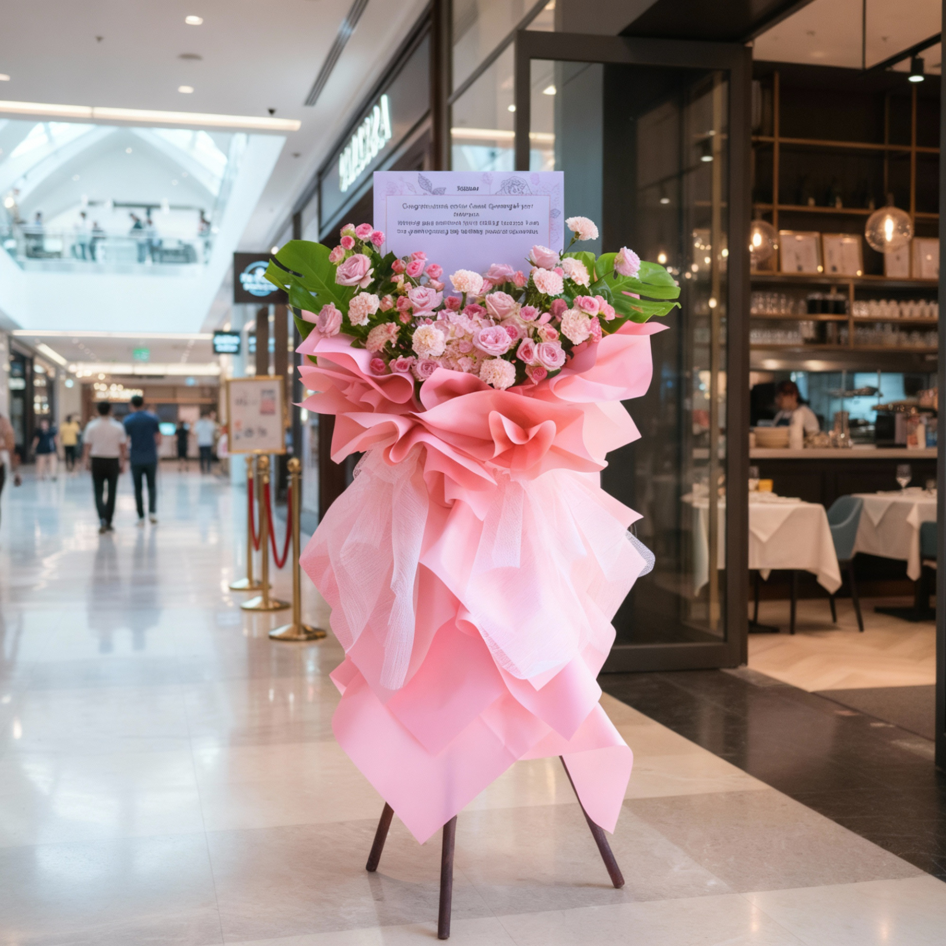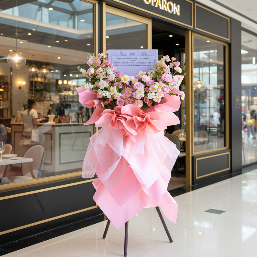Step into a world of pure enchantment with “Pink Petals Delight” business opening stand– a captivating flower stand featuring a delightful pink color theme. Embrace the beauty of nature with an exquisite blend of delicate Spray Roses in sweet pink, lush Pink Hydrangeas, elegant Brut Carnations, fragrant White Mathiolas, charming Pink Astilbes, and graceful Pink Tulips. Let “Pink Petals Delight” infuse joy and romance into any space or occasion. Elevate your celebrations or surprise someone special with this mesmerizing collection of pink blooms, handcrafted to perfection.