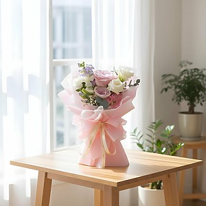 The pink roses, with their soft and soothing color, symbolize love, compassion, and the determination to overcome adversity. This mini bouquet serves as a poignant gesture of solidarity and encouragement for individuals and their families who are navigating the challenges of breast cancer.