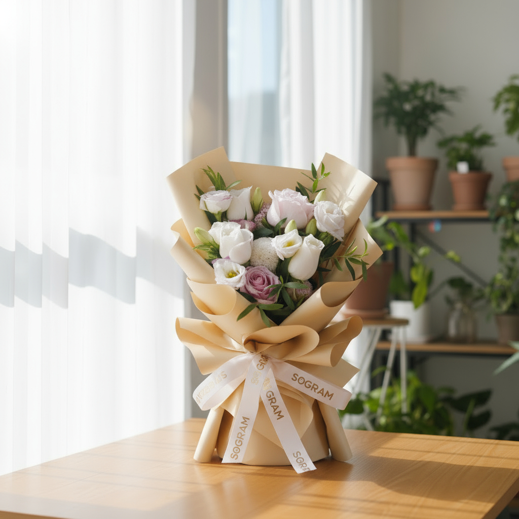 When you combine light pink roses and white roses into one bouquet, they represent happiness and joy, with the white flowers radiating the purity of intention. We design this bouquet with Craft Wrapping to bring out the Elegance & Rustic Look & feel. If you’re looking to tell someone they make the best version of you, this is the bouquet you are looking for.