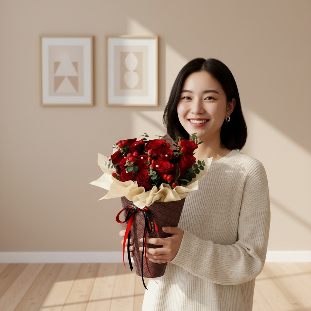 Wrapped in elegant white wrapping, this bouquet reflects sincerity and everlasting affection — the perfect gift to say “you are forever mine” on Valentine’s Day or any romantic occasion.