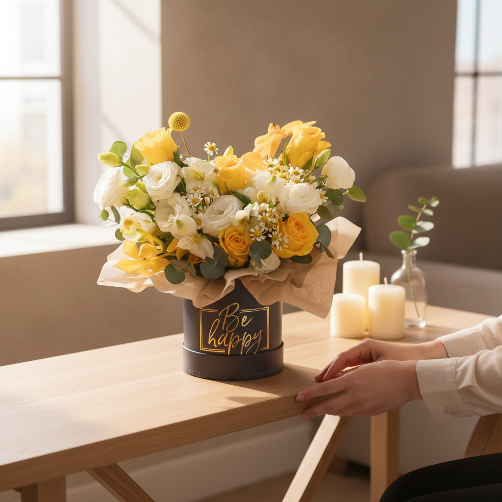 Perfect for any special occasion or simply to brighten someone’s day, the “Yellow Magic Flower Box” is more than just a floral arrangement; it’s a celebration of life’s vibrant moments and the joy that nature’s beauty brings.