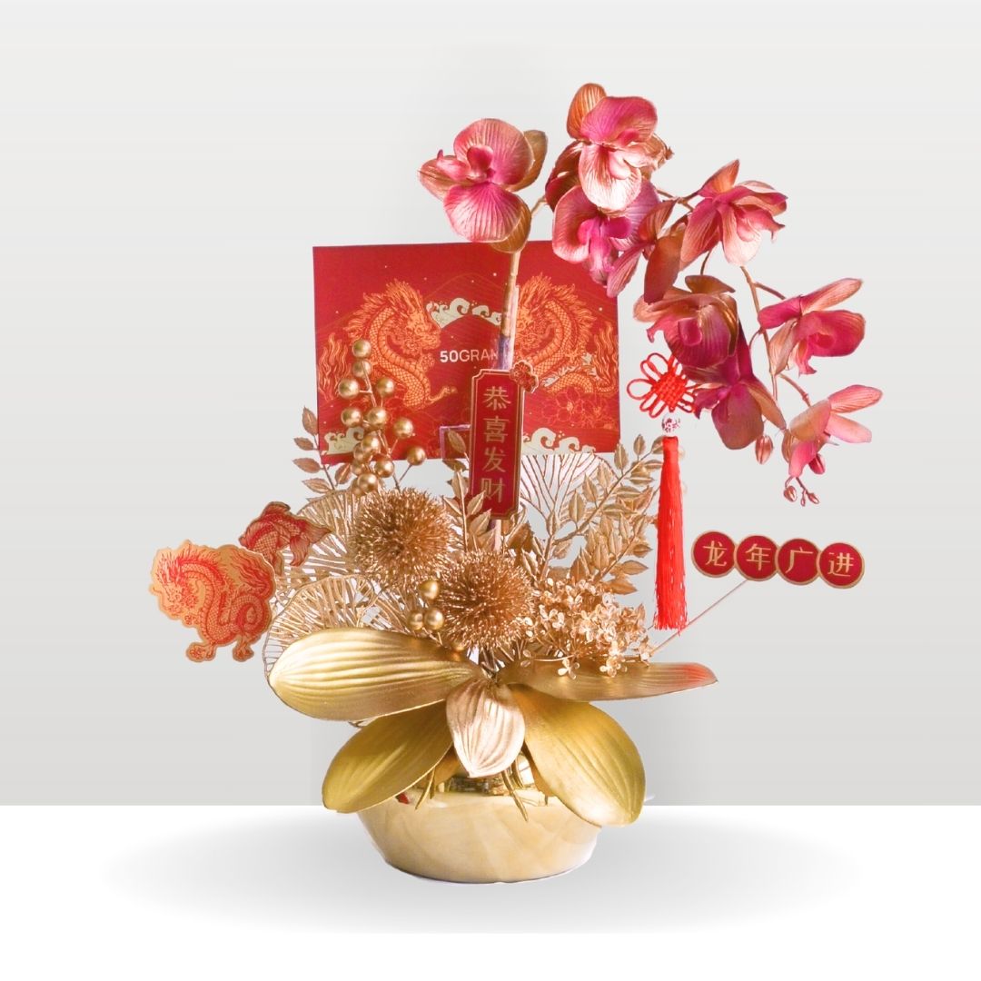 吉祥如意 – 过年花 Good Luck and Prosperity Orchid CNY Flower Pot