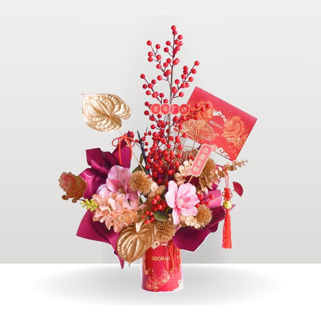 鸿运当头 – 过年花 Lucky Red Cherry Blossom CNY Flower